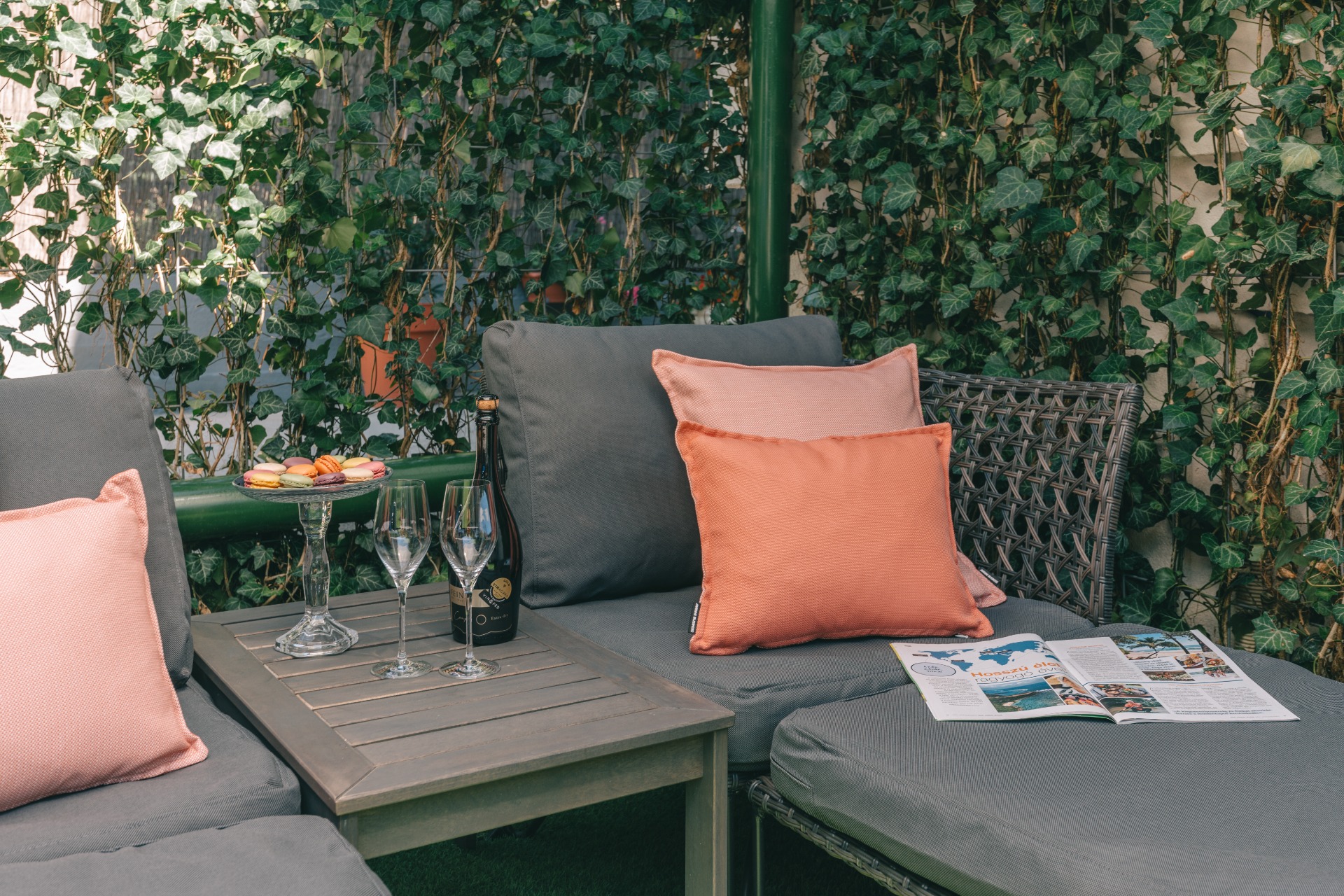 a privát mini kertben jó időben napozhatsz, olvashatsz vagy megbeszélhetitek az aznapi élményeket, esetleg a további programtervet