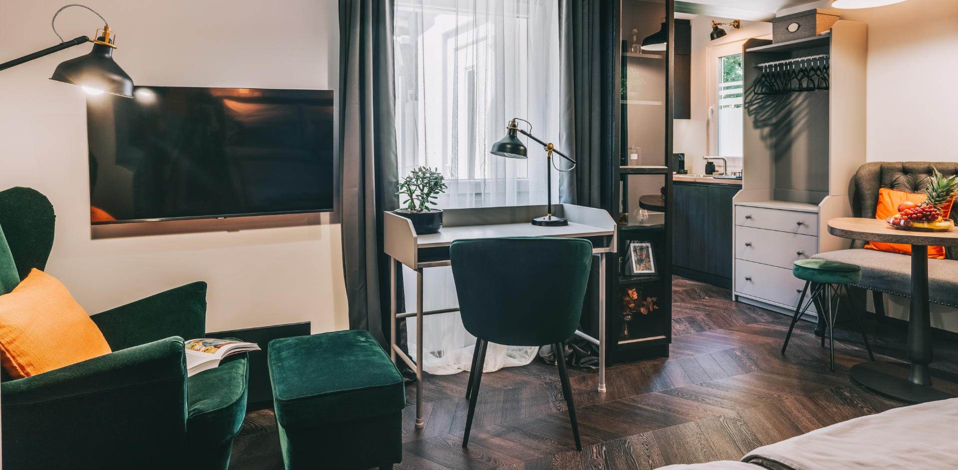 kényelmes ággyal, nagy párnákkal, a TV-n streaming előfizetésekkel (hbo, netflix, direct one), marshall hordozható hangfallal, olvasósarokkal, íróasztallal várunk